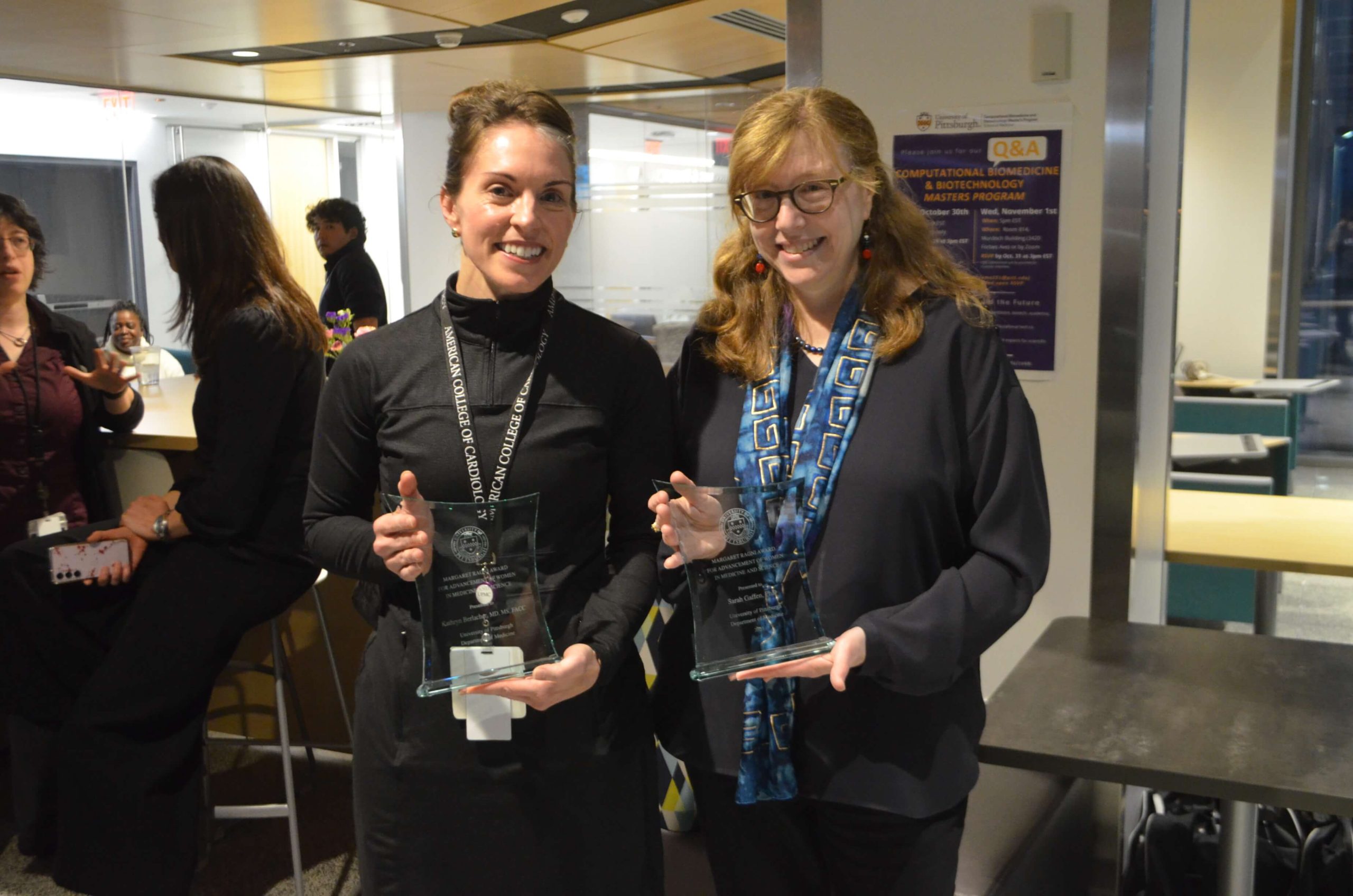 The awards were presented to Drs. Berlacher and Gaffen by Drs. Ora Weisz and Maggie Ragni and at the DOM Women’s Networking Reception in November.